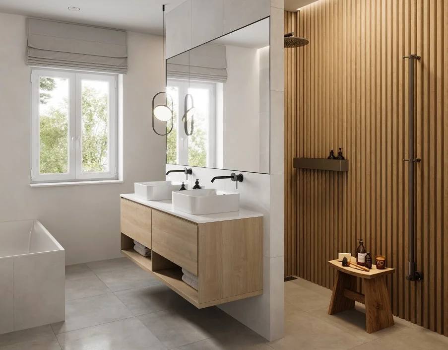 Stilvoller Badezimmerschrank aus robustem MDF mit wasserabweisender Oberfläche – ideal für Feuchträume